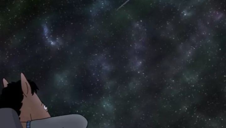 - Bojack's traveling montage, set to a soulful "Horse With No Name" cover by show composer Patrick Carney and Michelle Branch of the Black Keys. The part where he looks up at the night sky--the wide-open space full of glittering stars, very much like a planetarium--doubles as a heart-punch.