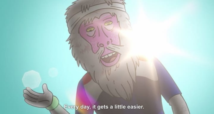The glass wall becomes a mirror - but not a distorted funhouse one, showing you only the worst parts of yourself. You're not the joke. But for the first time in your life, you get every. Single. One.