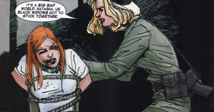 In the comics, Natasha and Yelena have a rather complicated relationship. Yelena idolises Nat, but also resents her for being the only person to have attained higher training scores from the Red Room than she did. She spends much of her first comic appearance trying to kill Natasha, believing that this is the only way to truly earn her Black Widow title. In the midst of these murder attempts, Nat subtly mentors Yelena, hoping to spare her from being used by the Red Room the same way she was.