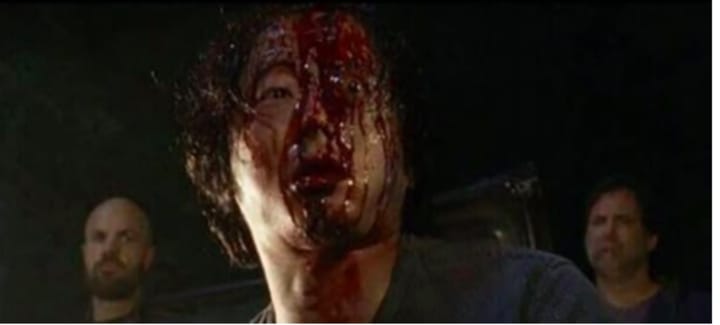 AMC, you bastards. While audiences had an agonizing summer wait to find out who kissed Negan's baseball bat, the payoff of his two victims was worth it. Not that Abraham's death wasn't also tragic, but it wasn't a patch on the "big" victim of the Lucille incident. #TheWalkingDead teased us for just a little bit that it wouldn't follow the comic books, but in hindsight, we always knew it would be Glenn.