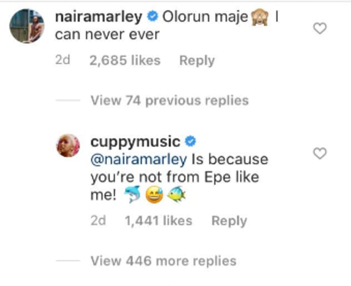 DJ Cuppy herself read Naira Marley’s comment and upon seeing his comment, she responded to him saying: