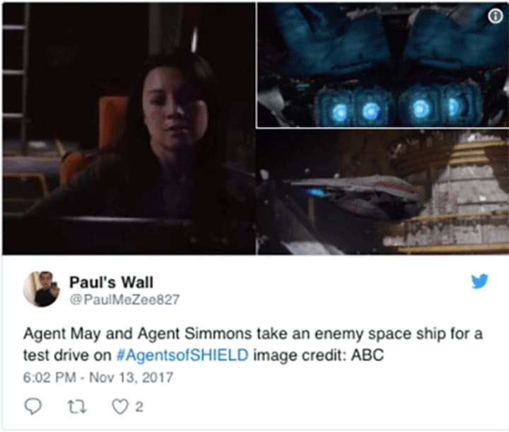 Apparently, Agent May and Simmons will find themselves aboard an alien spaceship that neither of them know how to operate. Luckily, May has enough confidence in her piloting ability that she takes it out for a test drive.
