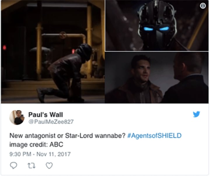 To be clear, the character in the images above isn't Peter Quill, but his helmet and jacket do appear quite similar to Star-Lord's. It's yet to be seen if this character is like Peter Quill, personality-wise, considering his ominous entrance. Plus, he can be seen attaching some anti-gravity weapon on one of the S.H.I.E.L.D. Agents, disabling them, so he's probably not an ally to Coulson or his team.