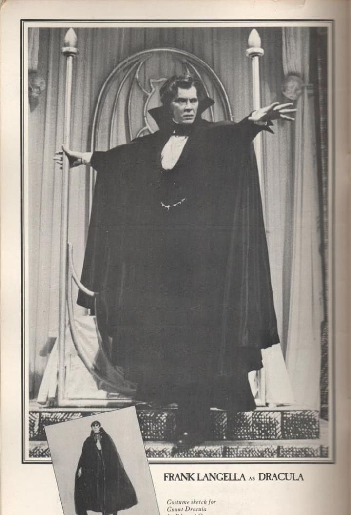 In 1977 while at university my English professor asked us to write a review about a play. Any play at all. It had to be current and it had to be on Broadway. Well during that time one of my favorite actors was darkly handsome Frank Langella. Say no more I knew he was on Broadway and I was delighted. The play was “Dracula”. So I told my professor that it would be the play I would review.