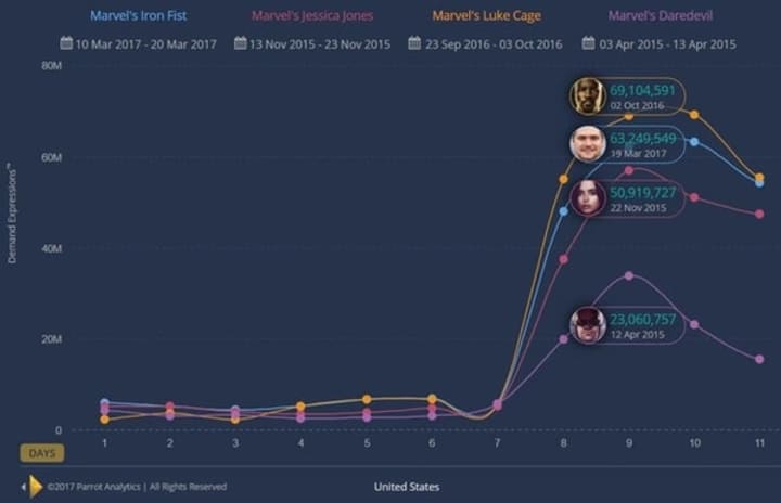 The simple fact is that, for all the critical reception, Iron Fist is proving to be an absolute hit over on Netflix. Third-party analysis has shown that the series is performing better than Daredevil or even Jessica Jones; Comic Book Movie published a useful infographic to give you a sense of how the show's doing: