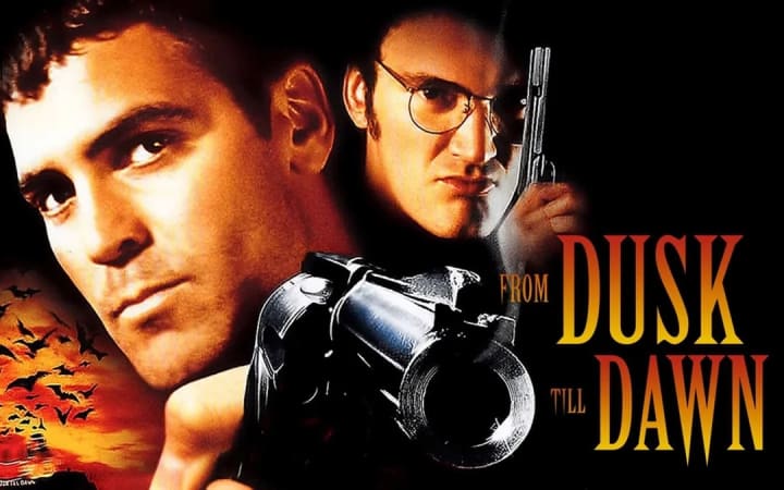 The plot of From Dusk Till Dawn is centered around the Gecko brothers, portrayed by George Clooney and Quentin Tarantino, who are on the run from the law for all of their murderous criminal activities. Eventually the brothers take captive a family known as the Fullers, headed by father and former minister Jacob Fuller, portrayed by Harvey Keitel, who they use as a cover to slip into Mexico past border patrol. Once in Mexico the Geckos and the Fullers hide out in a bar full of exotic dancers called the Titty Twister. After a hostile confrontation with the bar’s bouncers, the Geckos, the Fullers and the rest of the bar’s patrons discover that the bar is ran by vampires and the rest of the night becomes a battle royal for survival.