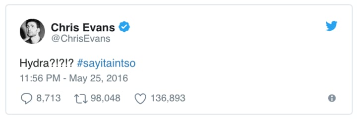 Even Chris Evans has chimed in — after a fashionably late response. Here's all he had to say: