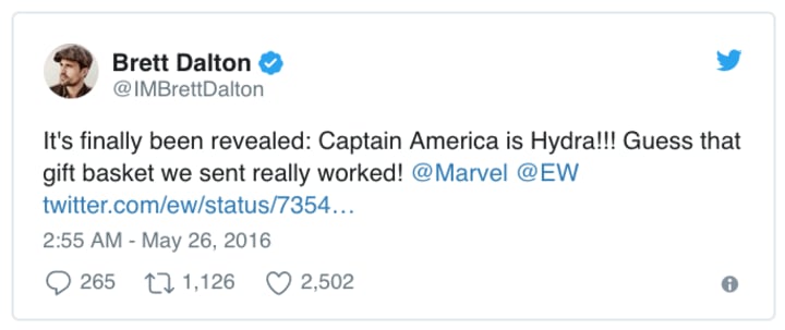 It's nice I'm now getting abuse from lunatics about Captain America, a comic I haven't worked on for over five years.— Ed Brubaker (@brubaker) May 26, 2016