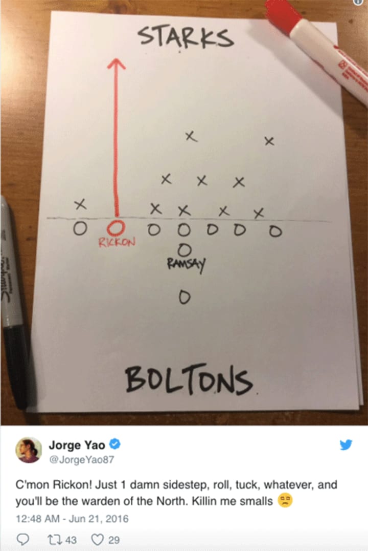 Wowzers, Game of Thrones superb ninth episode from Season 6 certainly managed to live up to its hype. Whilst some are hailing it as the best episode ever, there was one slight issue that we had with the series's latest outing. Snow and co. may have employed some clever military tactics, but if only someone had taught poor Rickon Stark the basics on arrow avoidance! Fair to say, Twitter has lost its s**t!