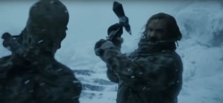 Something tells me that it would be a cold day in hell before everyone lives on Game of Thrones, but there's a chance. The hammer that the Hound carries may not even be Gendry's prized hammer, but it seems like an interesting choice of weapon for the Hound, considering that Gendry and his hammar just arrived back in Westeros, and the Hound is partial to the sword.