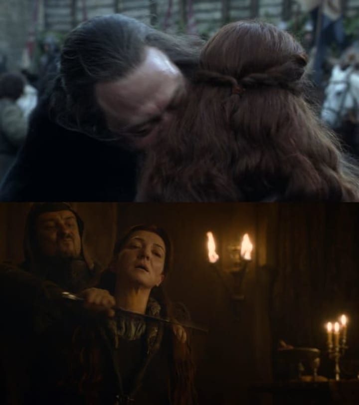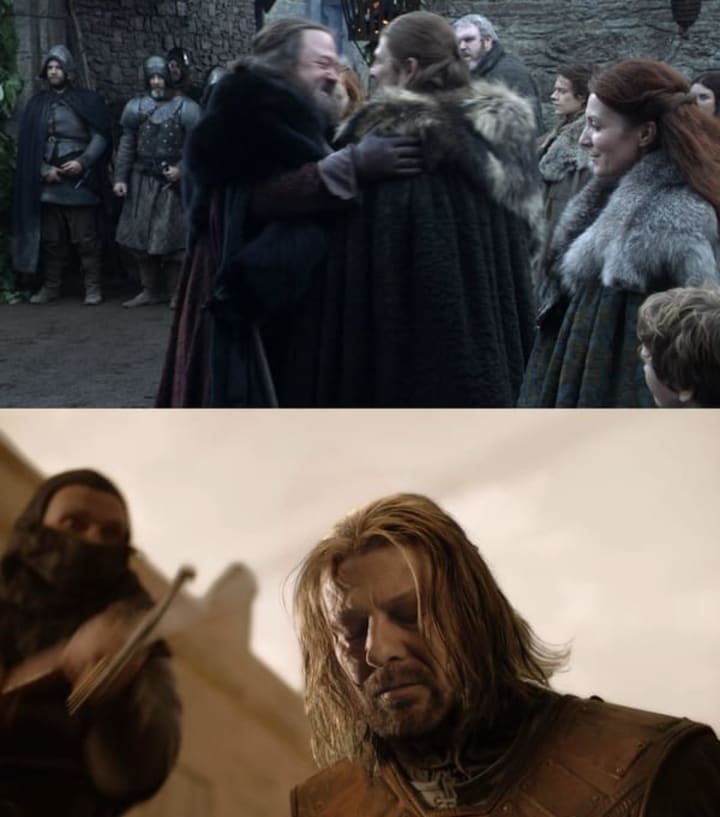King Robert might have only lasted until Episode 7 (meeting his demise at the tusks of a boar), and from there on out the proverbial shit really hit the fan. Reddit user NANAs_mic points out that when the Lannisters first arrive at Winterfell, upon greeting them the doomed king only touches a few of the Stark family lineup. Given Rickon's death last episode, it means that all those who the king touched met a similar fate to Baratheon himself. Let's check it out...