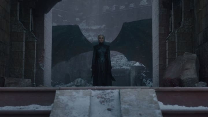 The Dragon Queen with Drogon behind her: Arguably the most arresting image in Game of Thrones' Season 8 Episode 6. [Credit: HBO]