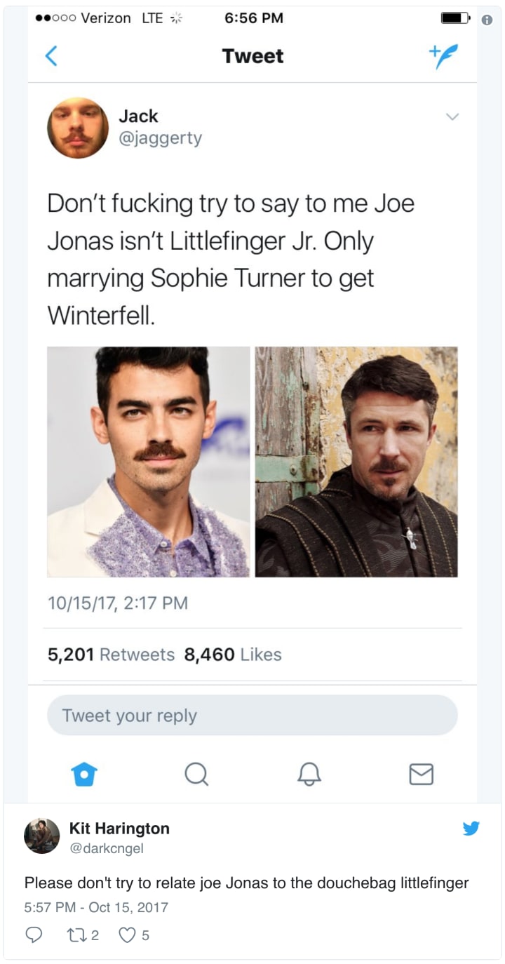 Then we have fans who are just done with these 'Joe Jonas is Littlefinger' tweets and they don't have a problem bashing those who think so.