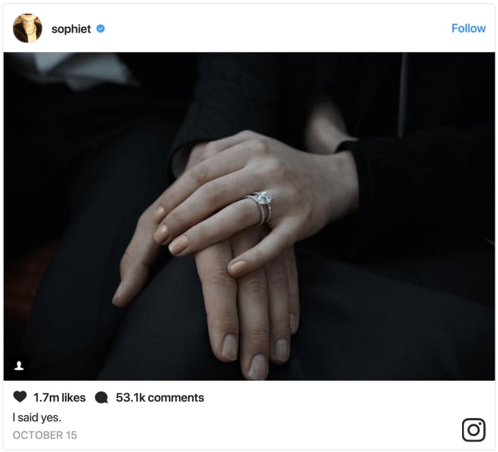 Earlier this week, one of our favorite Starks announced her engagement officially via Instagram. Game of Thrones star Sophie Turner has been dating singer Joe Jonas since last year, but they only recently took their relationship to the next level.