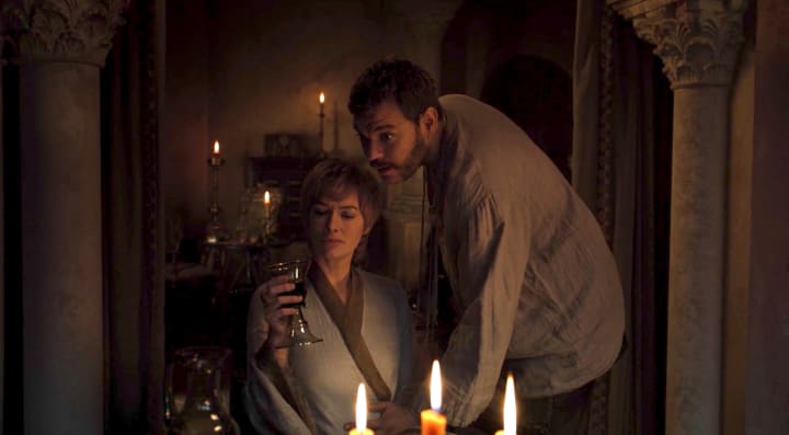 Cersei sharing an intimate moment with Euron Greyjoy in the Game of Thrones Season 8 premiere. [Credit: HBO]
