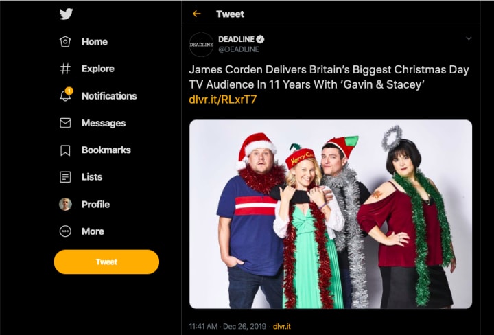 In the now edited headline, Deadline first shared the news by saying “James Corden Delivers Britain’s Biggest Christmas Day TV Audience in 11 Years with ‘Gavin & Stacey’”. Upon seeing the headline, fans blasted the headline as being sexist for forgetting Ruth Jones, who co-writes the sitcom. One Twitter user said:
