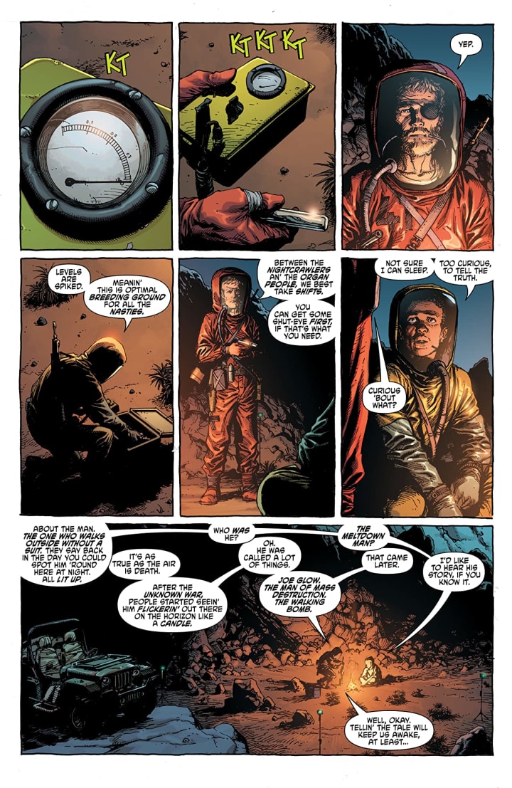Set in the years after a nuclear war ravaged the planet, desperate outlaws battle for survival in a world of radioactive chaos. Out past the poisoned wasteland lives a man even the Nightcrawlers and Organ People fear. Some name him Joe Glow, others call him the Meltdown Man. But his name…is Geiger.