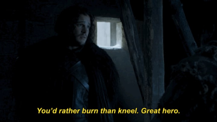 Tyrion would continue to do what he does best and play the game, whilst Jaime travels around murdering anyone with a claim to the throne. Jaime blames Tyrion for his crimes and forces his brother into exile. Seeing the error of the Lannister ways, Tyrion changes sides and joins the Starks to take down Jaime. There would have been some kind of awkward love triangle when Tyrion also professes his love for Arya, and probably some sort of trial by combat between him and Jon Snow over her heart. Martin's letter also states that The Winds of Winter would actually come to the light of day, as the third and final book, and would see Westeros finally fight against the threat of the White Walkers . Given the way that the TV show is playing out, we imagine this plot to play a BIG part in the final two seasons anyway. We would give the Iron Throne itself to find out what that last paragraph said, but we will never know. Martin couldn't have put it better himself...