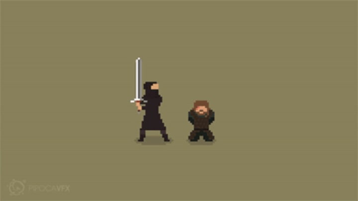 With daddy dead, Robb Stark continues to gather his banners and leads the North against the South; he maims Joffrey in battle, but comes afoul of Lannister forces, dying on the battlefield. As long as his wolf's head is still sewn onto his body, we are happy for a more noble death for Robb. However, here's a kicker for you to replace that OMG Red Wedding moment: