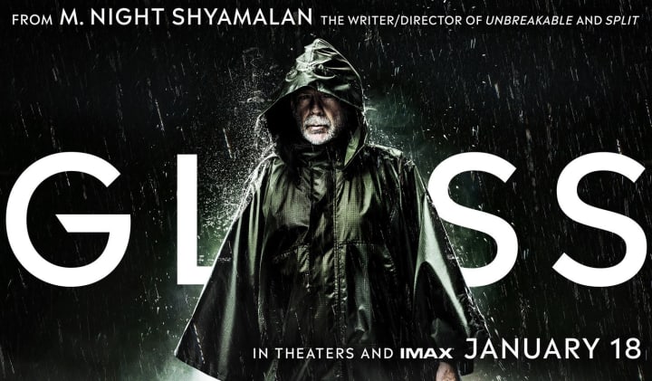Glass is a superhero thriller written and directed by M. Night Shyamalan. The film is a sequel to his 2000 film, Unbreakable, and his 2016 film, Split. It follows David Dunn (Bruce Willis) and Keven Wendell Crumb (James McAvoy), as they get locked in the same mental institution as Elijah Price (Samuel L. Jackson).
