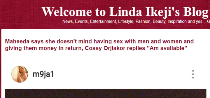 Maheeda says she doesn't mind having sex with men and women and giving them money in return, Cossy Orjiakor replies ''Am available''