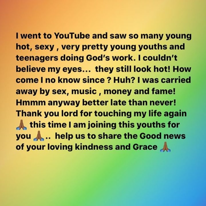 Her Instagram page now consists of, get this, Bible Scriptures! Motivational messages. Words of the day.