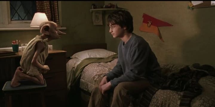 At the beginning of The Chamber of Secrets, Vernon and Petunia have Mr. Mason over to dinner, instructing Harry to do as he says above. Unfortunately, Dobby decides to introduce himself to Harry just then. Instead of making no noise, Harry and Dobby end up causing quite the racket, and the fiasco ends with Dobby dropping Petunia's cake on Mrs. Mason's head.