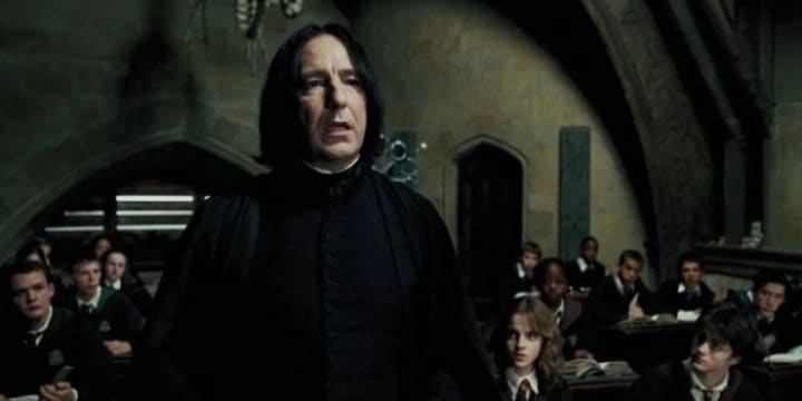 Snape’s worrying obsession with Lily Potter should be reason enough for his solitude. Not only would he be too hung up on Lily to devote himself to any other romantic partner, but he also displays unhealthy behavior in all of his relationships. With Lily, he becomes possessive; with Harry, abusive; with Dumbledore and even Voldemort, he lacks independence and assertiveness.