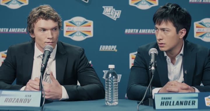 If you are a big fan of romance tropes like I am, then you know just how many of the most beloved ones the show does well. Of course, we have the classic enemies to lovers. I genuinely believe that there is nothing better than a well-crafted enemies to lovers story. Shane and Ilya play for rival teams, as well as rival nations, and they are both the top players in hockey, often going back and forth between who is considered 1st and 2nd best. They are pitted against each other in the rink, in press conferences, amongst their friends and families. It's always Rozanov versus Hollander. But little does everyone else know that they have never, not once, actually hated each other.