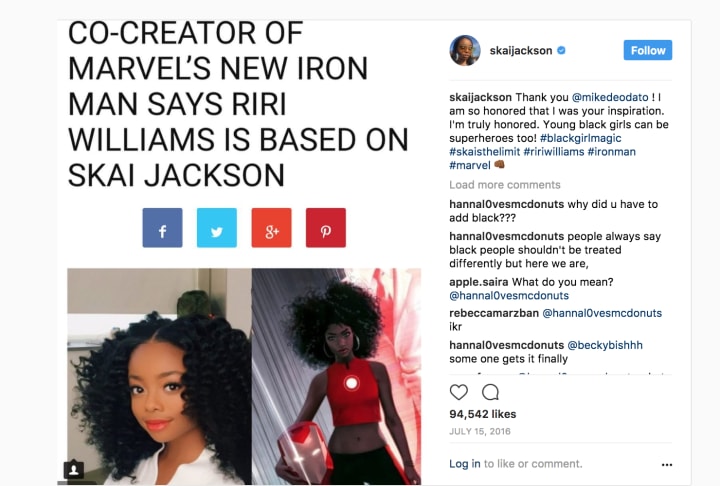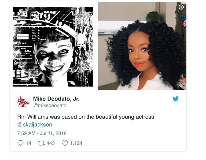 Marvel put in real work to make sure Riri's design was sound. The character's design was based on a real teenager — Skai Jackson, of Disney Channel fame!