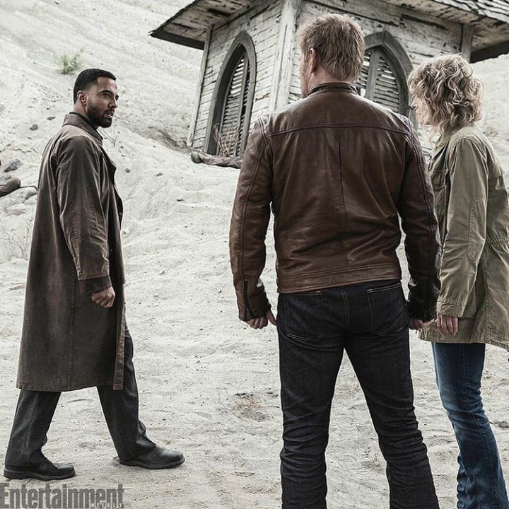 EW exclusively released a photo from Season 13 Episode 2 ‘The Rising Son’ where Lucifer and Mary Winchester met face to face with Michael of the alternate universe; but this time around, there was no Castiel to yell 'assbutt' and throw holy fire.
