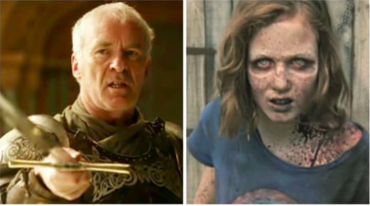 For all your Starks, where are the water-carrying Greyjoys, and for every Governor, where is the Milton? While they may not receive top billing, the side characters of both shows often get caught in the crossfire of the big players. Actor Ian McElhinney was less than impressed with Ser Barristan's death in Game of Thrones, while poor Madison Lintz barely got to open her mouth as Sophia on The Walking Dead.