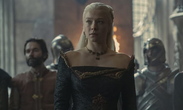 Daemon is still got a hot temper, and this show seems to revel in it (as do we, let’s be honest) — but now, it’s only for very specific occasions, like when his wife is slandered in court. It’s actually a tragically hilarious scene in the show. Vaemond Corlys insults Rhaenyra and her children, and a doddering Viserys demands his tongue. Daemon coolly steps in and chops off his head, as nonchalantly as one cuts vegetables. “He can keep his tongue,” he says. Matt Smith’s Daemon is a deliciously different character and he brings something exciting to the show—there’s a definite lull when he isn’t around.