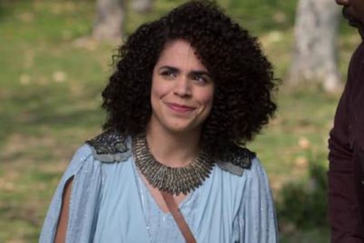 While I would have liked to see the Goddess as a different ethnicity, I appreciate that she tried numerous bodies before landing in the very talented Tricia Helfer. But the show turns the table with Dennis Haysbert, a Black American actor, playing the Almighty.
