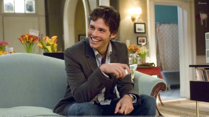 A nice hunk of man-candy is the perfect accessory. Mark Ruffalo in 13 Going on Thirty. Hugh Dancy in Confessions of a Shopaholic. James Marsden in 27 Dresses. Hugh Jackman in Scoop. George Clooney in One Fine Day. (And some people ask me WHY I want to be a writer. This better be a package deal).