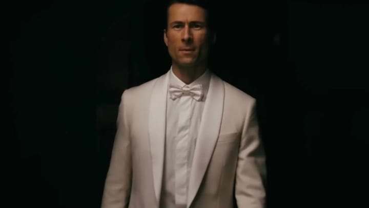 The man confessing his sins ahead of the gas chamber is Beckett Redfellow (Glen Powell), an impossibly handsome, chisel-jawed hunk hiding his attractiveness beneath a deliberately ugly haircut. Make no mistake, Beckett is a murderer. But his victims were not exactly sympathetic innocents.