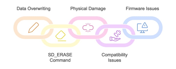 - Secondly, cameras often use the SD_ERASE command during formatting. This command is designed to cleanse the card, remove all previously stored data, and prepare it for new content. If you have lost files due to formatting your CFexpress card, the SD_ERASE command is likely what your camera applied. It erases data, and you cannot recover lost files.