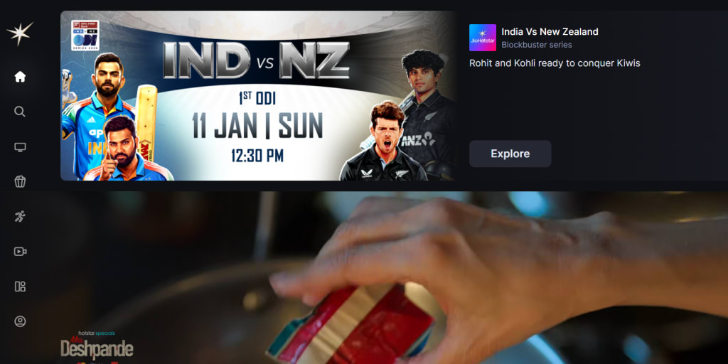 Namely, you can watch TV series like Anupama, Yeh Rishta Kya Kehlata Hai, and Big Boss and various Bollywood films, soap operas, and regional cinema. You can also watch original Hotstar Specials such as Criminal Justice and popular films like Munjya and Kill.