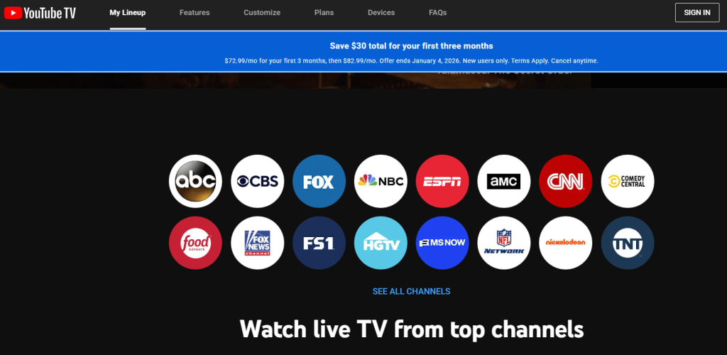 - Visit the YouTube TV website or app