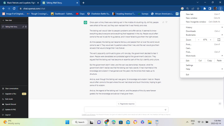 I decided to try it myself. I logged in to ChatGPT and asked it to create a story about a talking wall for me. The first story it generated was identical to the one on Facebook. I asked for another: