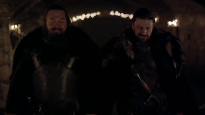 Robert goes with Ned to Winterfell's crypts to pay his respects to Lyanna—whilst also revealing the extent of his hatred for Rhaegar. This is another significant scene to watch in hindsight, as we now know that Rhaegar loved Lyanna, and eloped with her, rather than kidnapping her. There could also be major foreshadowing in the setting—as footage from the season eight trailers shows the Starks in the crypts again, hinting that an important battle may take place at this location soon. My favorite comment here is when King Robert says to Ned, "I have a son, you have a daughter, we'll join our houses." Obviously, when Robert first iterated this, he was referring to Joffrey and Sansa—a union which famously failed to materialize. Although that marriage is now out of the picture, there's still the possibility of a romance between Arya and Robert's bastard son Gendry. Now that would be an incredible homage to this scene—and foreshadowing done to perfection.