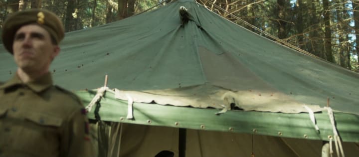 So my second day on set was a less hectic affair since their was a much smaller group of extras around. Our bigger scenes had been shot the day before and you could sense everyone was working at a slightly lesser pace. Accordingly I was placed all over the set during takes as we were down to maybe three soldiers, I even got to guard the tent that 'Churchie' was in. To my surprise, after the scene was completed, a bunch of crew members appeared with a cake and ushered us all into the main set tent to sing happy birthday to a VERY surprised Brian Cox. He grinned ear to ear and thanked us all for making his day. Well, I think he thanked us or he could have been thanking the bottle of whisky he was also presented with, but I choose to believe it was for the singing...