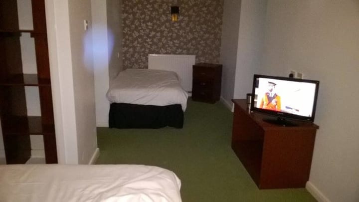 After a long twelve hours of filming I retired for the night at a nearby hotel I'd booked. I grabbed a quick takeaway and was in bed sleeping pretty quickly. I did, however, take a picture of the room as It had a strange shape to it and I wanted to show a friend. In the morning, after I'd left, I looked through my phone and found the picture had a very odd-looking blue orb on it. Being a horror movie fan I was glad that I hadn't looked at the picture before I bedded down for the night. I'm pretty sure I would have kept the lights on and not slept a wink. The question I kept thinking after was, did I share my room with a ghost? Probably not but who knows.
