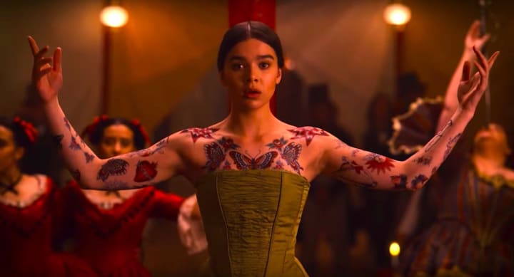 A beautiful example of this is in the first episode. A carriage carrying Death appears throughout the episode, pulled by a ghostly team of horses. Scraps of handwriting appear repeatedly in the frame, showing Dickinson’s struggle to write one of her most famous poems.