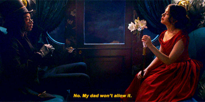 At the end of the episode, Dickinson’s vision is complete, and we see her step into Death’s Carriage. Death is played by the rapper Wiz Khalifa with a stately and sly grace. He is happy to see Emily step into his carriage in a red dress and red lipstick and he is courtly as he gives her a tiny glass of wine. He peers over tiny sunglasses to welcome her to their date, but then he speaks ominously of the war that he knows is coming.