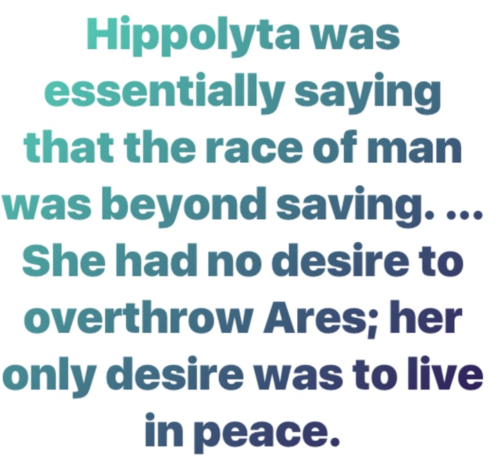 In doing so, Hippolyta was essentially saying that the race of man was beyond saving. After all, Diana was Zeus's last gift to the world — the God-Slayer herself.