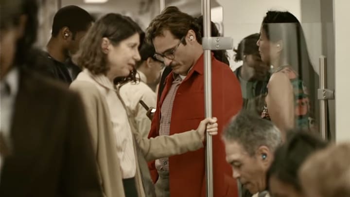 Her’s Theodore Twombly lives in a future of soft, warm hues and simplified technology. When he walks beneath the looming landscape of a metropolis, or stands in a crowded public transit, he’s surrounded by the harmony of subtle obliviousness: the internet is in everyone’s ear.