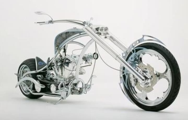 Orange County Choppers used exclusive development artwork and sketches of the robots provided by the film's producers to lay out a sleek, futuristic, robotic looking bike.