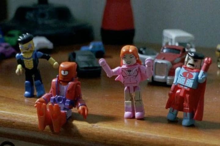 I still remember the opening scene of The Walking Dead, season 6, episode 8, "Start to Finish." The previous episode had ended on one hell of a cliffhanger, and they were doing the usual slow open before titles and intro. The scene showed quick glimpses around one of the children's bedrooms, and for about two and a half seconds, there were Invincible lego figures on my screen! I was SO excited! I LOVED this Easter egg so much!