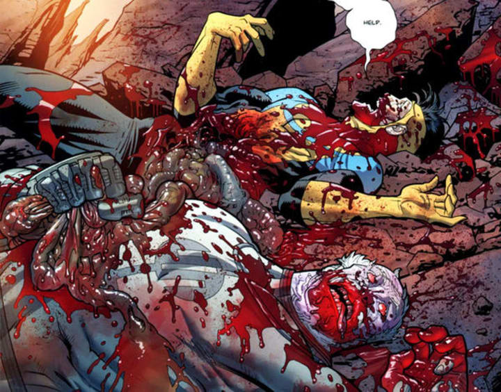 With a man like Kirkman behind the title, Invincible was never going to be a stroll in the park - Invincible isn't exactly as bad as The Crossed, but it isn't far off! If teen rape isn't your bag, then there is plenty of blood soaked pages in the comic too, and fights make The Punisher vs. Wolverine scenes seem tame. Pick up a copy and you should expect to see teeth and bones fly. Grayson again falls flat in the luck department, with one of the biggest battles seeing him actually go up against his own father. On the other side is Invincible's biggest foe, a bloodthirsty alien named Conquest, who is set on destroying the planet. Conquest quite literally punches a hole through Grayson's girlfriend, Atom Eve, whilst she burns his skin off. Eve serves as no Gwen Stacy and was brought back the next issue, but that isn't the point. However, even hole punching villains has nothing on Invincible #7, proving that Omni-Man serves as one of the series's most interesting characters. No. 7 is an early issue that throws one hell of a huge curveball at us. If properly played out on screen it would certainly deliver a 'Red Wedding', WTF moment. Invincible introduces us to the Guardians of the Globe - Kirkman's direct parody of the Justice League. There is Black Samson (Doc Samson), The Immortal (Superman), Darkwing (Batman), War Woman (Wonder Woman), Red Rush (Flash), Aquarus (Aquaman), Martian Man (Martian Manhunter), and The Green Ghost (Green Lantern)! Don't get too attached though, after just 18 pages Omni-Man enters their hideout and slaughters (almost) the entire team. An arching storyline means that Omni-Man is eventually outed by his son and flies away from Earth for some time. Imagine a season finale of Omni-Man and Mark's showdown, a few season's absence, and then the triumphant return of Omni-Man. Game of Thrones character returns would have nothing on that!